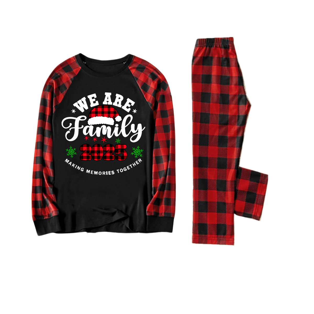 "We are Family2025" Santa Hat Monogram Print Letter Red & Black & Grey & White Plaid Family Matching Pajamas