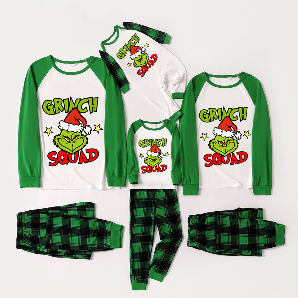 Christmas We are Family 2025 Letter Print Green Rotator Cuff Top With Green & Black Plaid Family Matching Pajamas