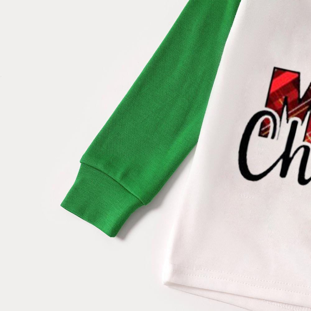 Christmas Cartoon and “Merry Christmas” Letter Print Family Matching Raglan Long-sleeve Pajamas Sets