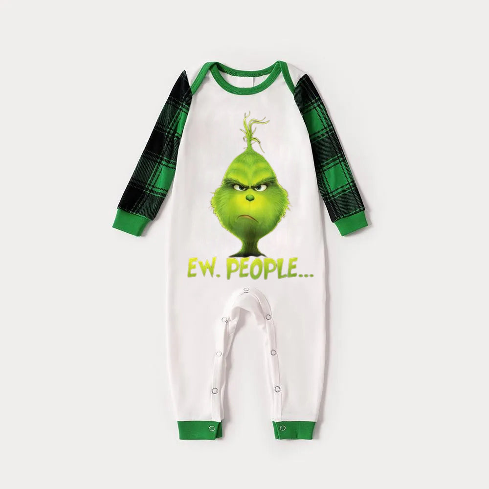 Christmas Cute Cartoon And 'Ew.People...' Letter Print Family Matching Raglan Long-sleeve Pajamas Sets
